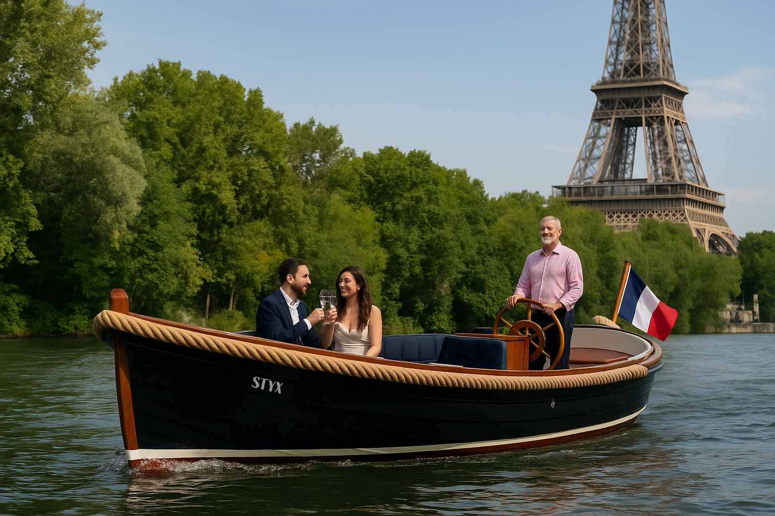 Bienvenue à bord de Croisières Seine Paris, votre expérience de navigation privée au cœur de la Ville Lumière. Dans un cadre exclusif, embarquez sur « le Styx » chaloupe hollandaise élégante pour découvrir Paris sous son plus beau visage. Que ce soit pour un moment romantique, une célébration intime ou un événement d'exception, chaque croisière est pensée pour vous offrir élégance, confort et émotions. Avec seulement six passagers à bord, la Seine devient votre salon privé, et les monuments de Paris vos invités d'honneur. Coupettes levées, laissez-vous porter par la magie des flots et la douceur d'un Paris intemporel.