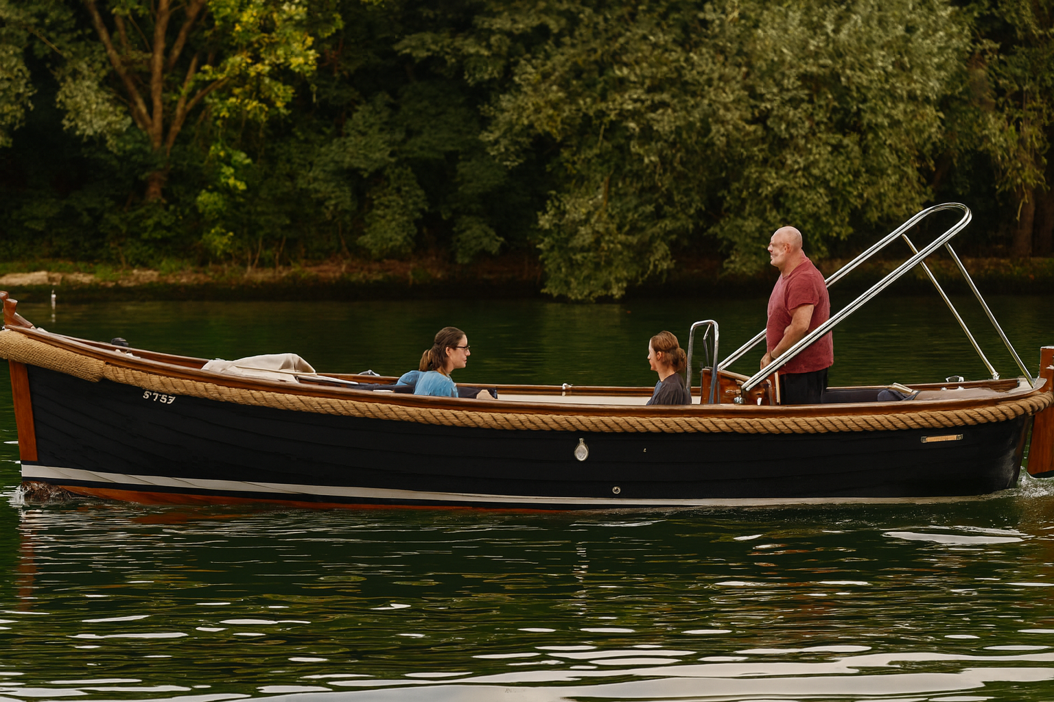 Histoire : Héritière du savoir-faire naval néerlandais, notre chaloupe incarne la robustesse et l'élégance. Restaurée et entretenue avec soin, elle conserve le charme du bois et du travail artisanal.